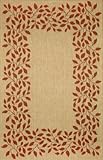 Indoor/Outdoor Woven Area Rug Leaf Border 7' 10" Square Terracotta Carpet |